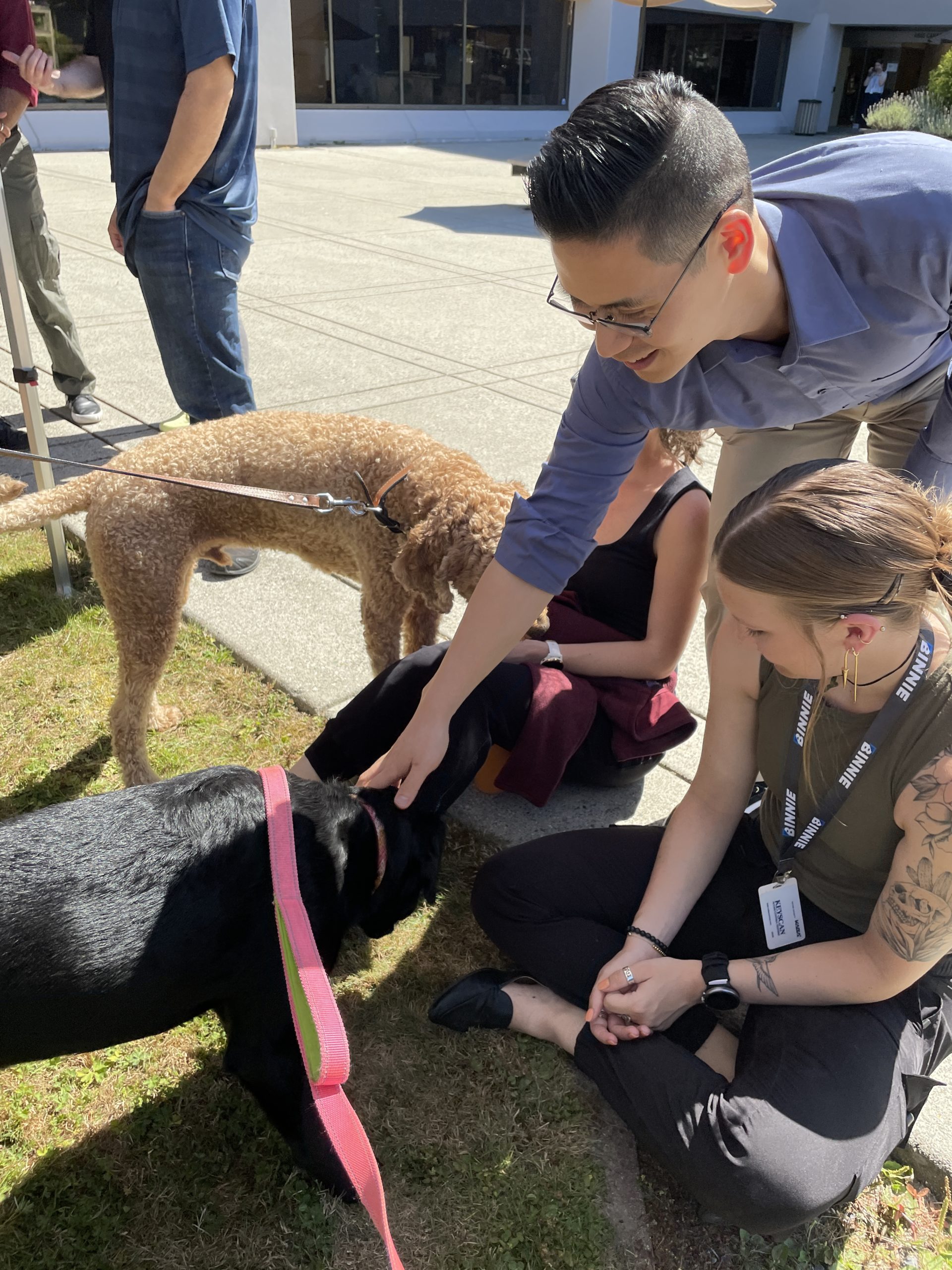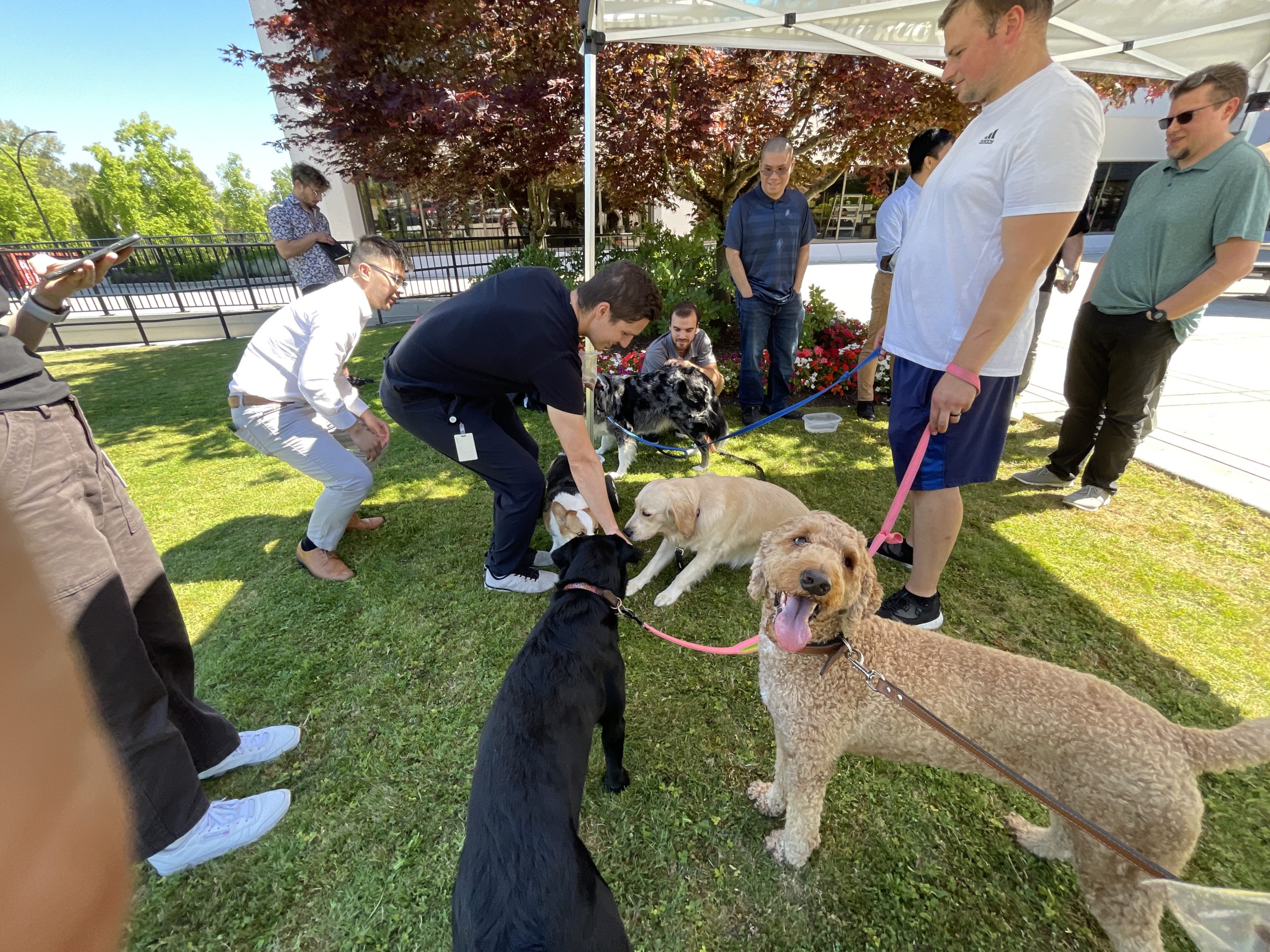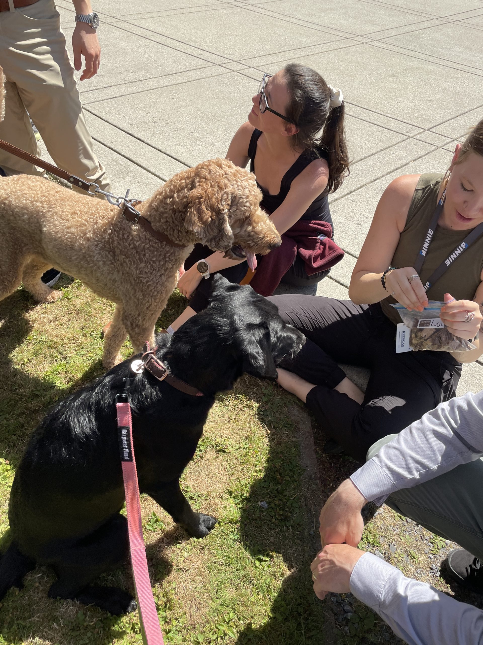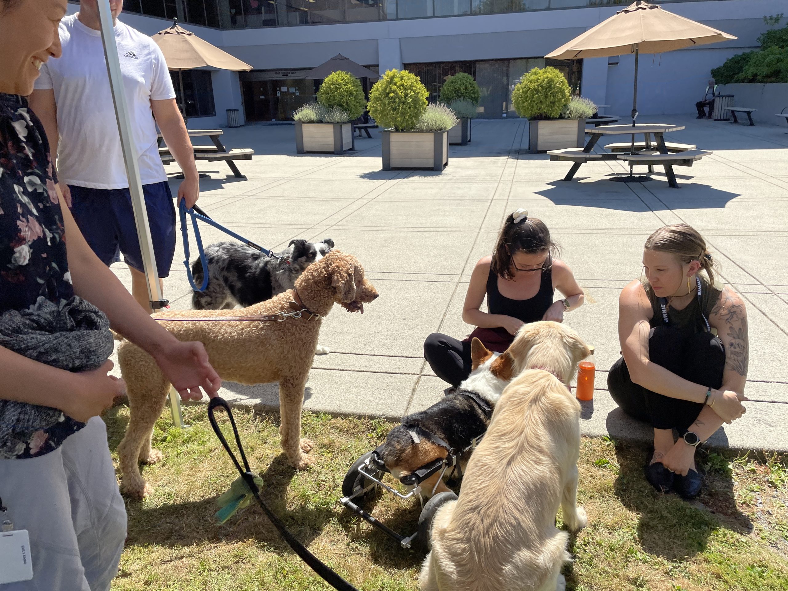 On August 17th, Binnie hosted our first ever puppy break event and hopefully not the last. We had a total of 5 wonderful dogs who shared some love and pets to anyone looking for a break during lunchtime! Thankfully, it was a beautiful, sunny day.