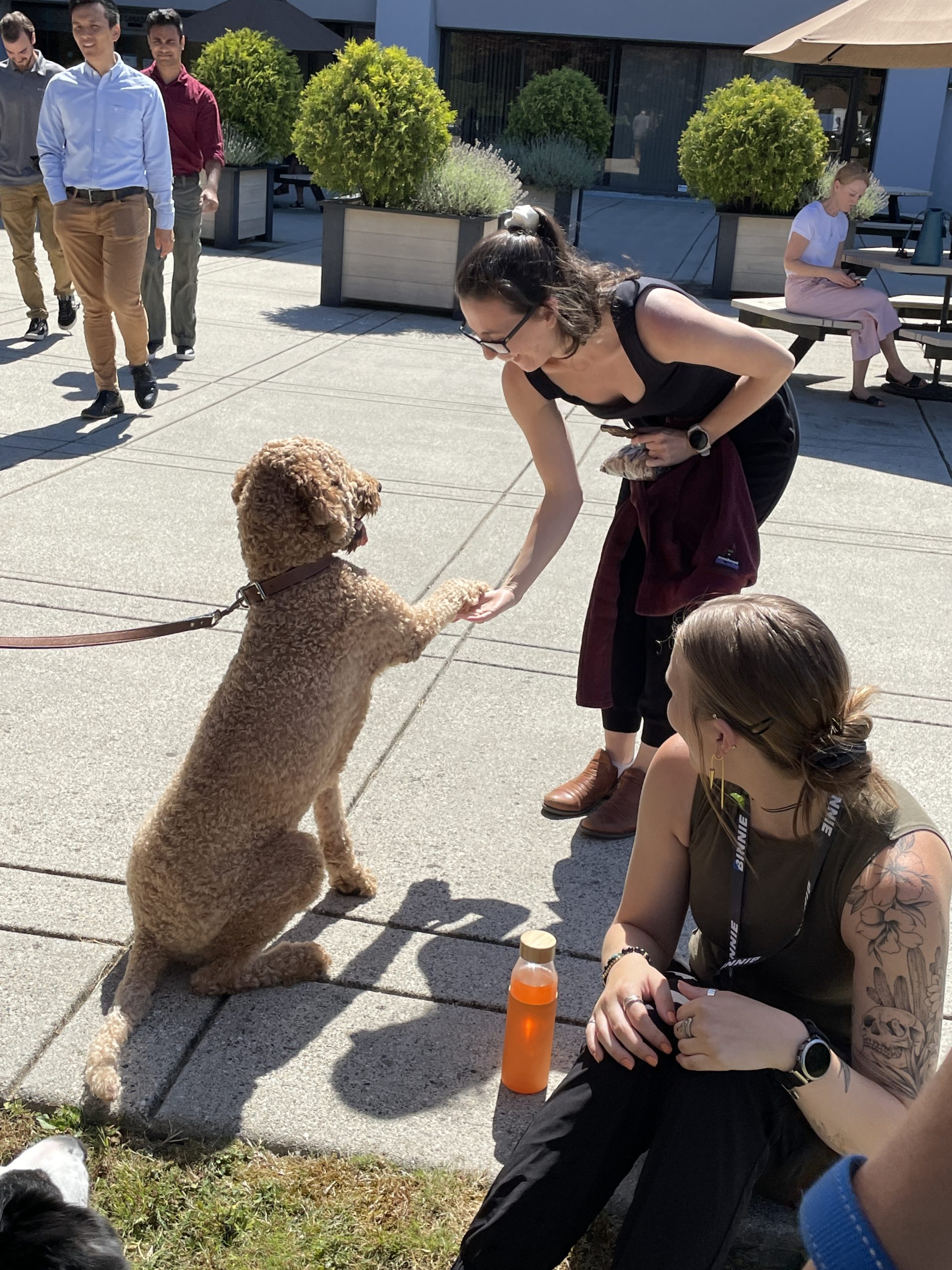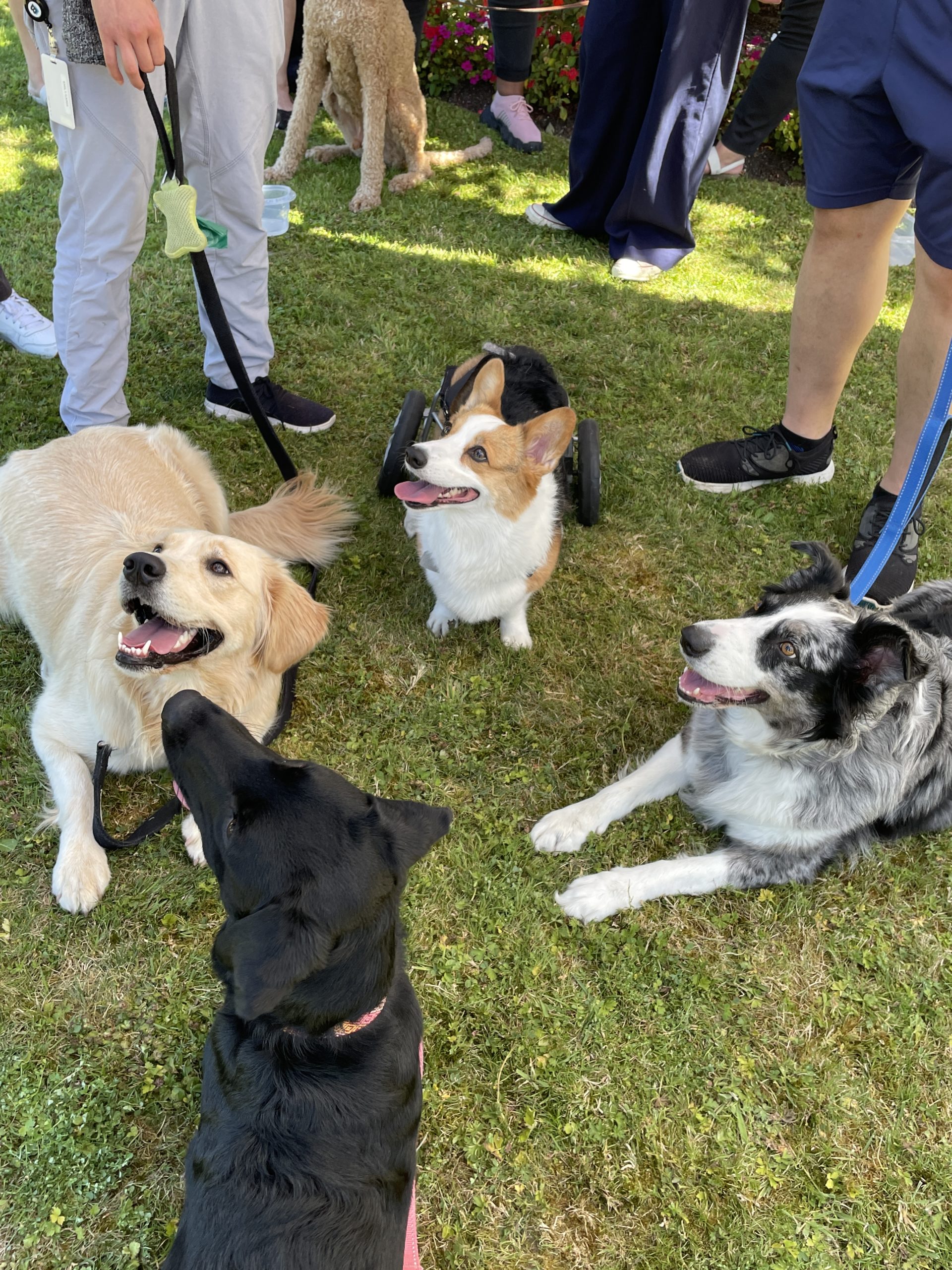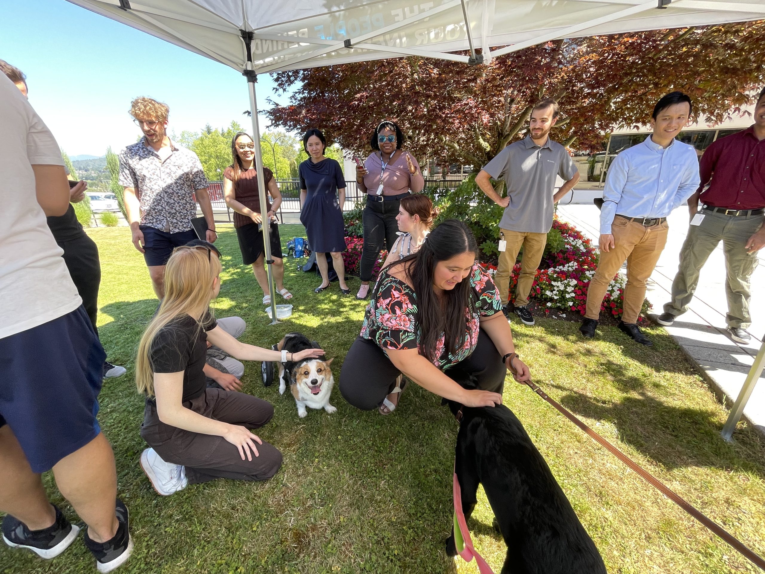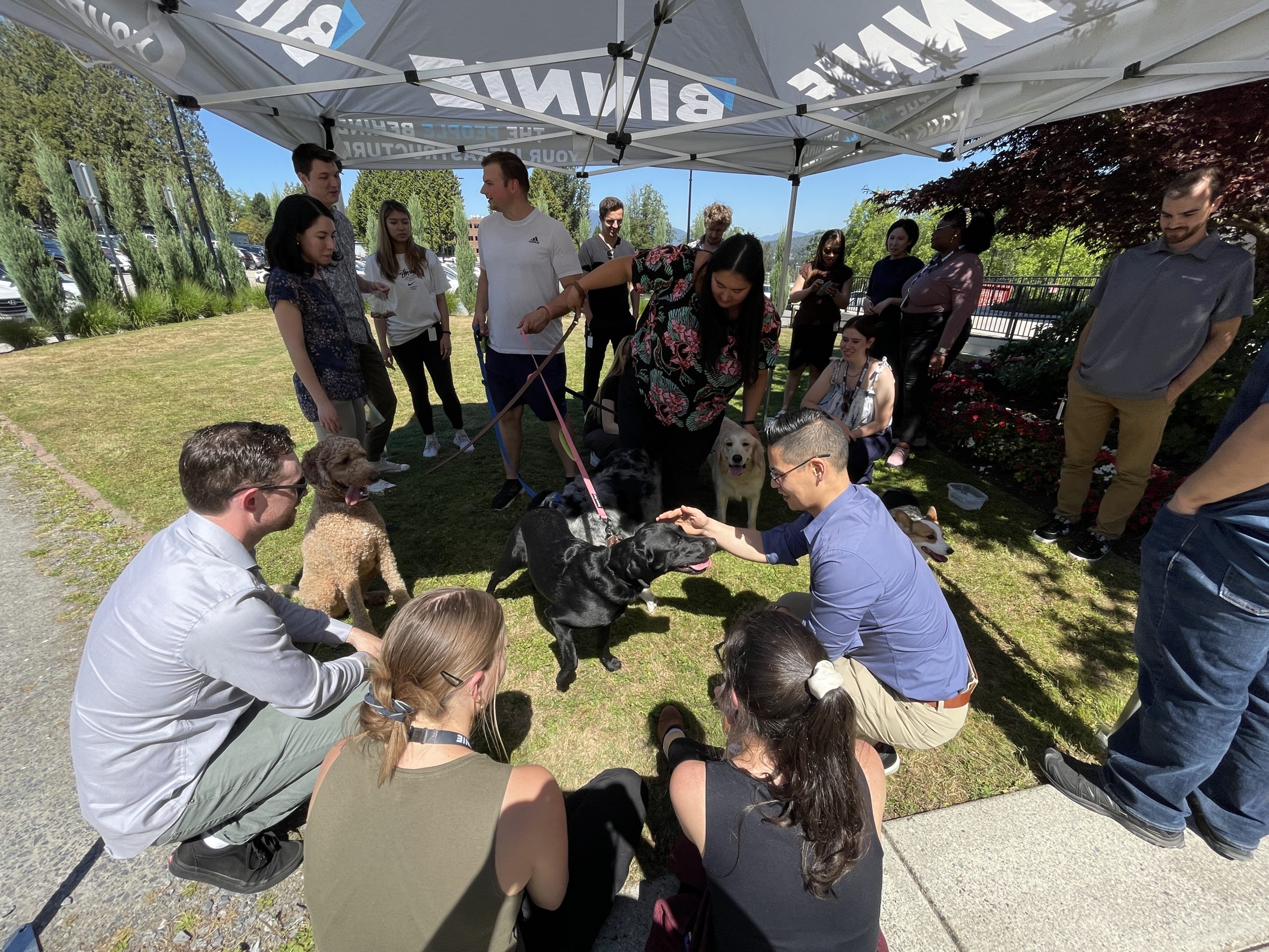 On August 17th, Binnie hosted our first ever puppy break event and hopefully not the last. We had a total of 5 wonderful dogs who shared some love and pets to anyone looking for a break during lunchtime! Thankfully, it was a beautiful, sunny day.
