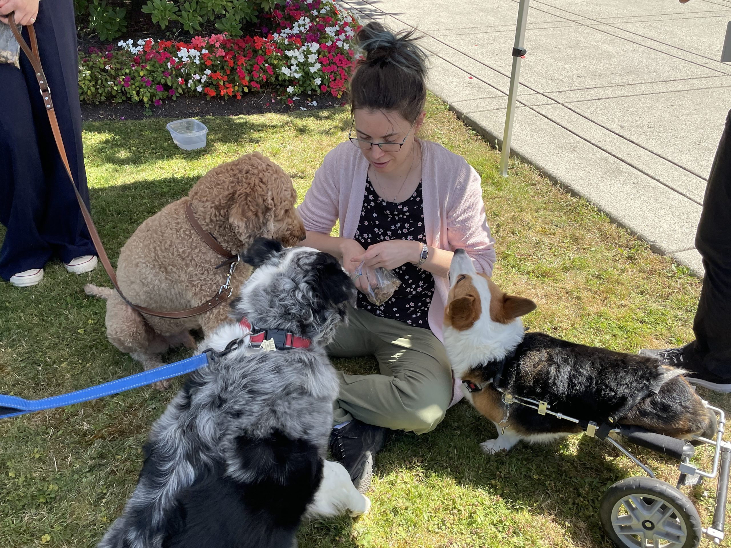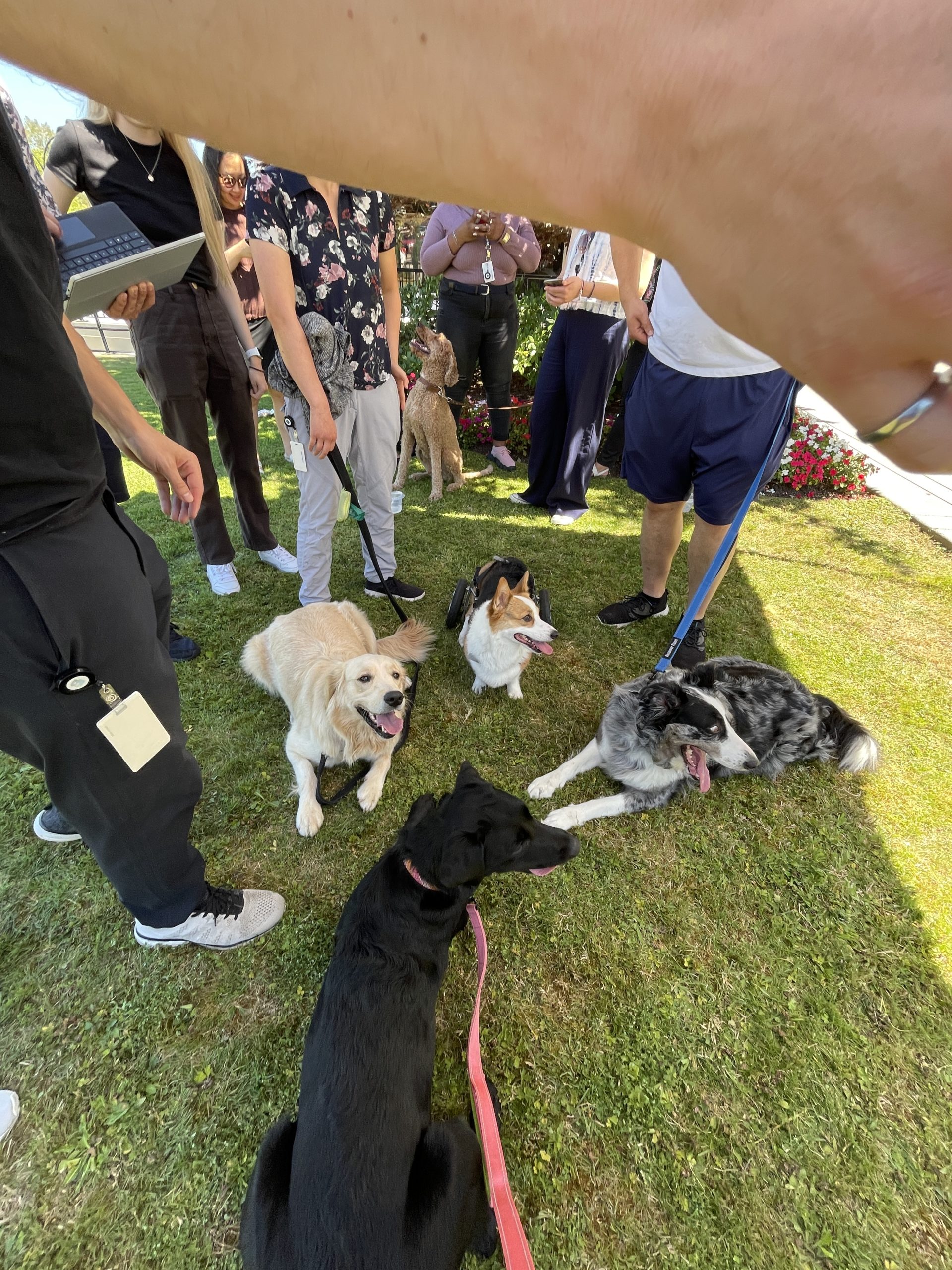 A total of over 30 staff stopped by to say hello and receive some canine therapy. Staff gave out treats and enjoyed some enthusiastic tricks by the dogs.