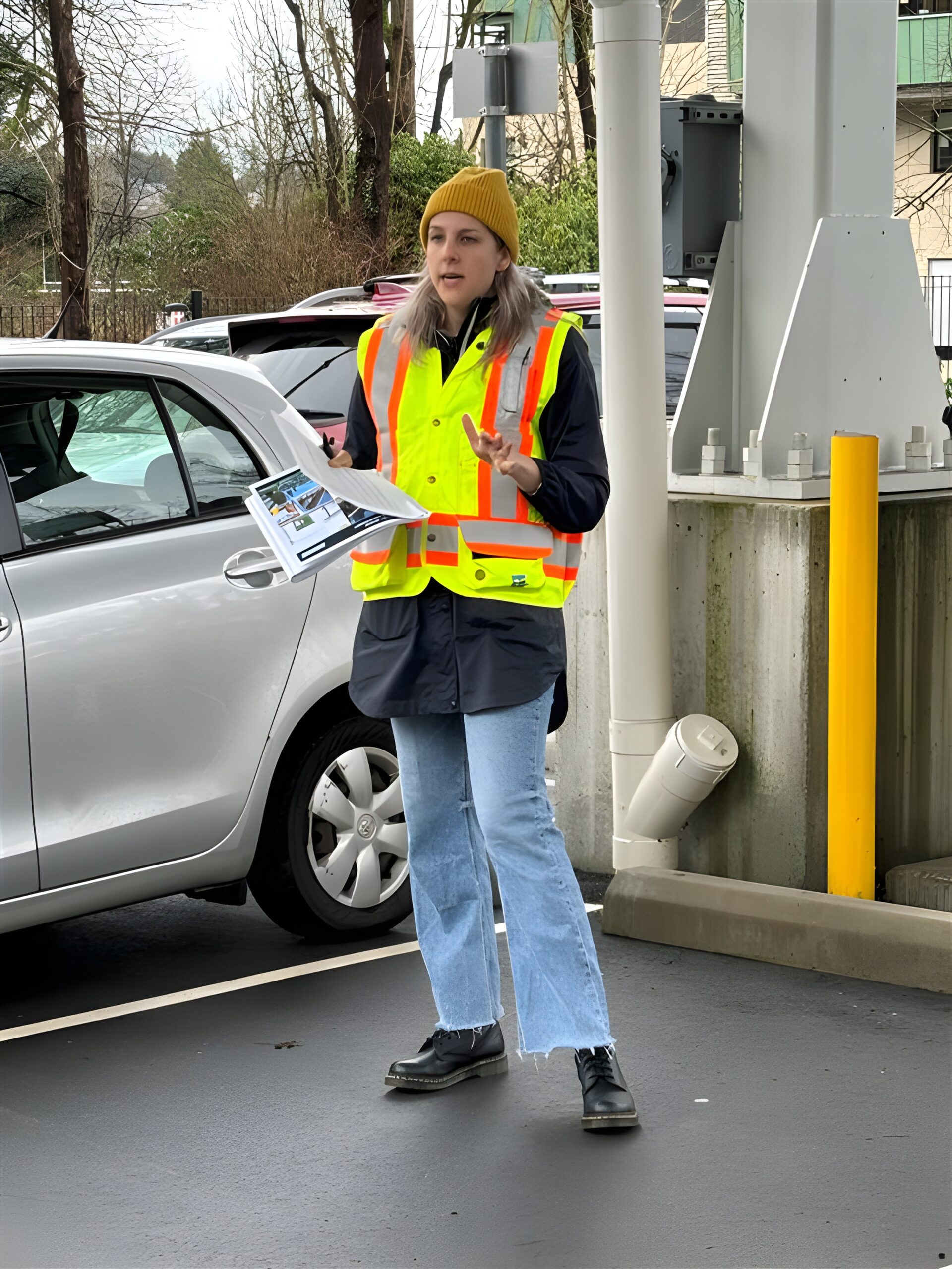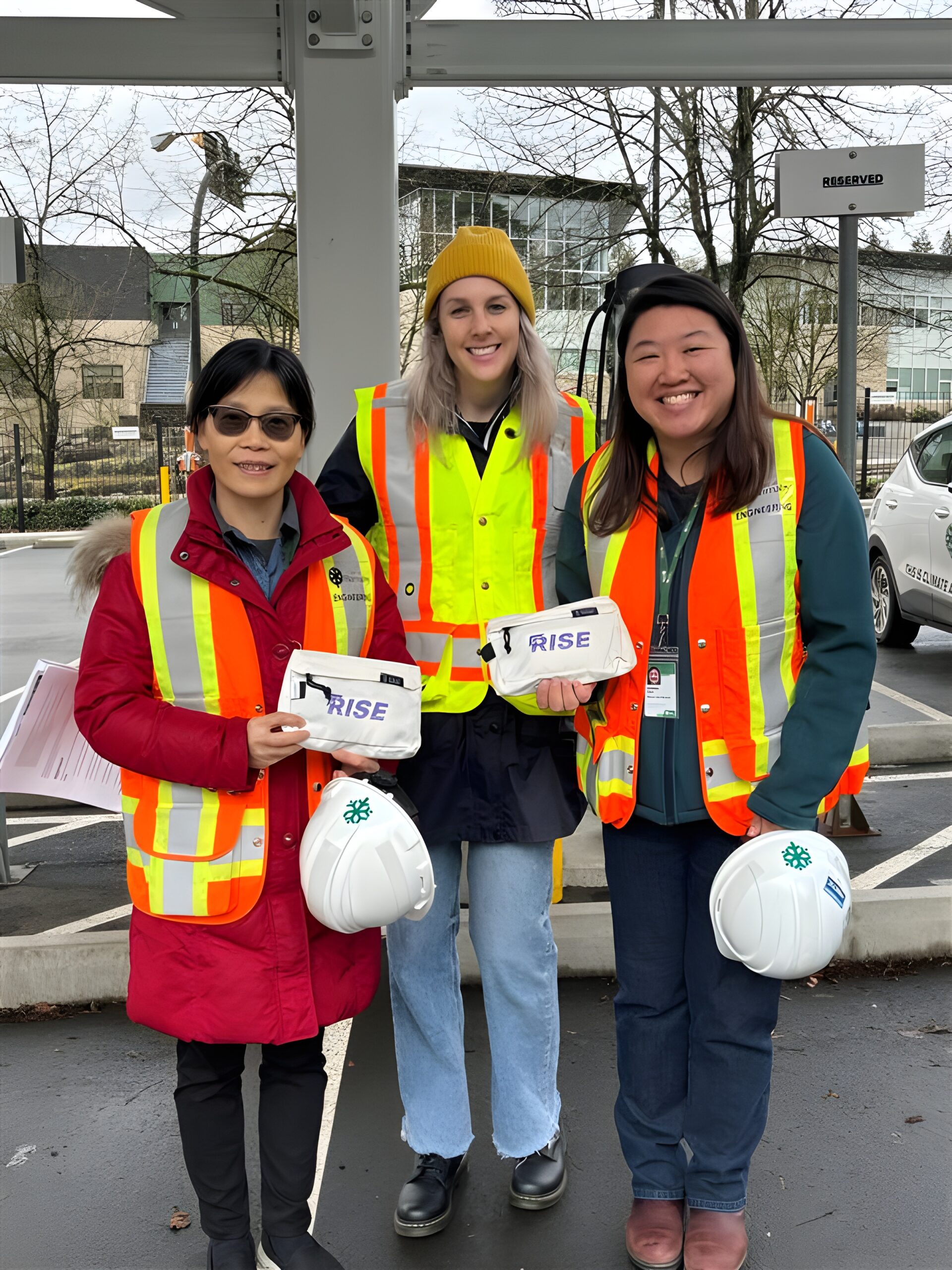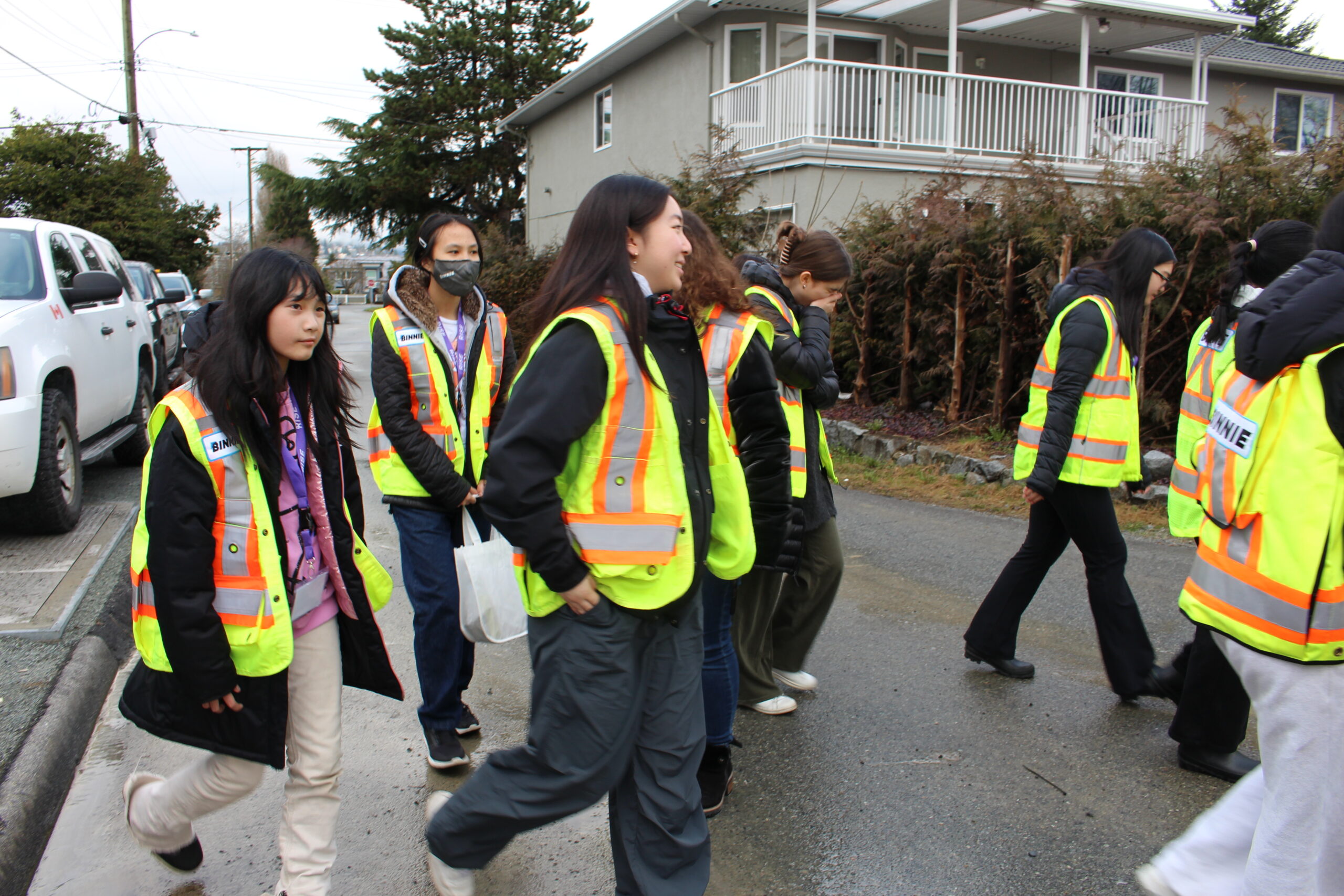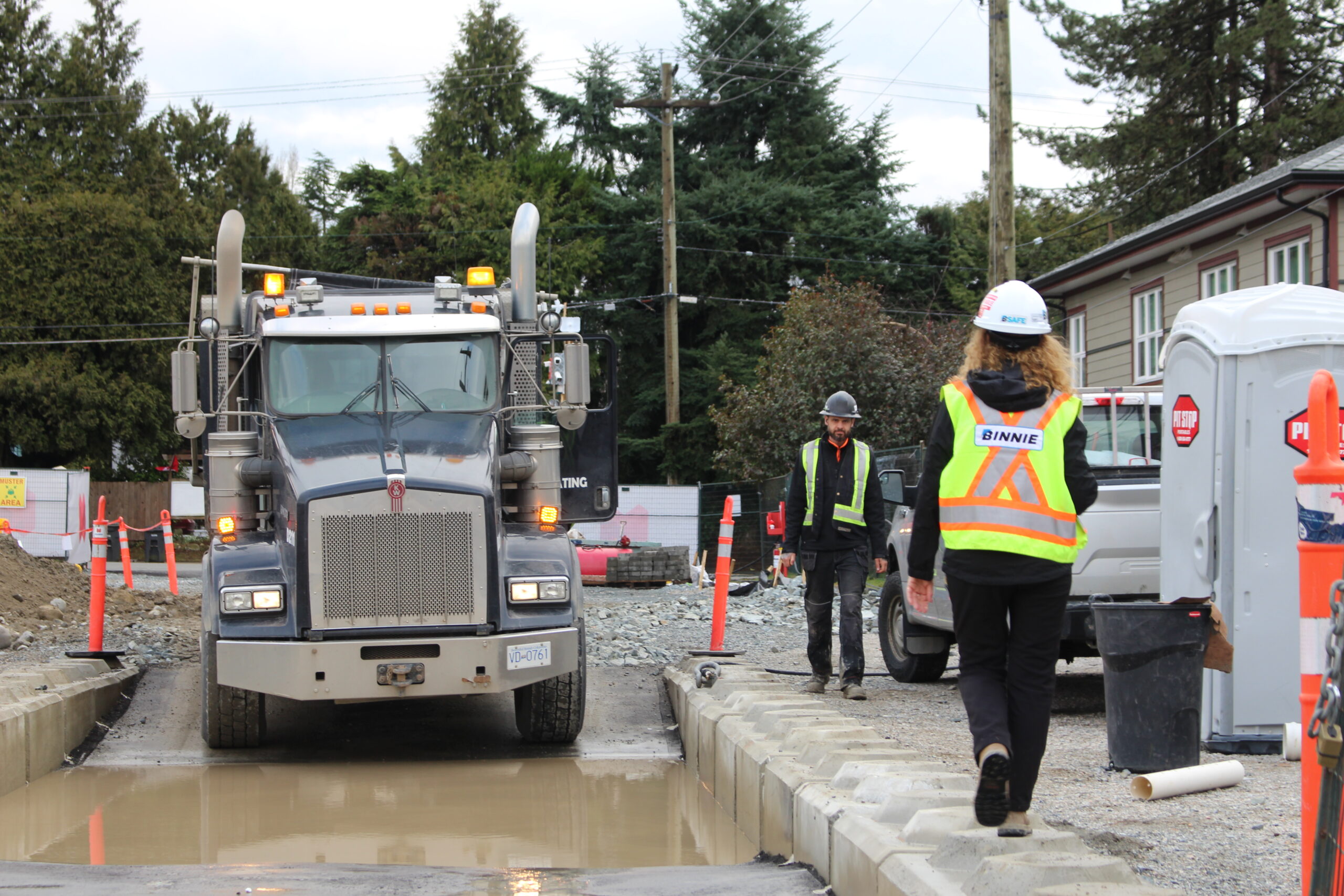 Our students also received the opportunity to tour and learn about two Binnie projects. One group walked to Burnaby City Hall to learn about Binnie’s contributions to the award-winning “EV Chargers and Solar Canopy Project,” while another group visited the “YWCA Housing Project” to learn about erosion sediment control.