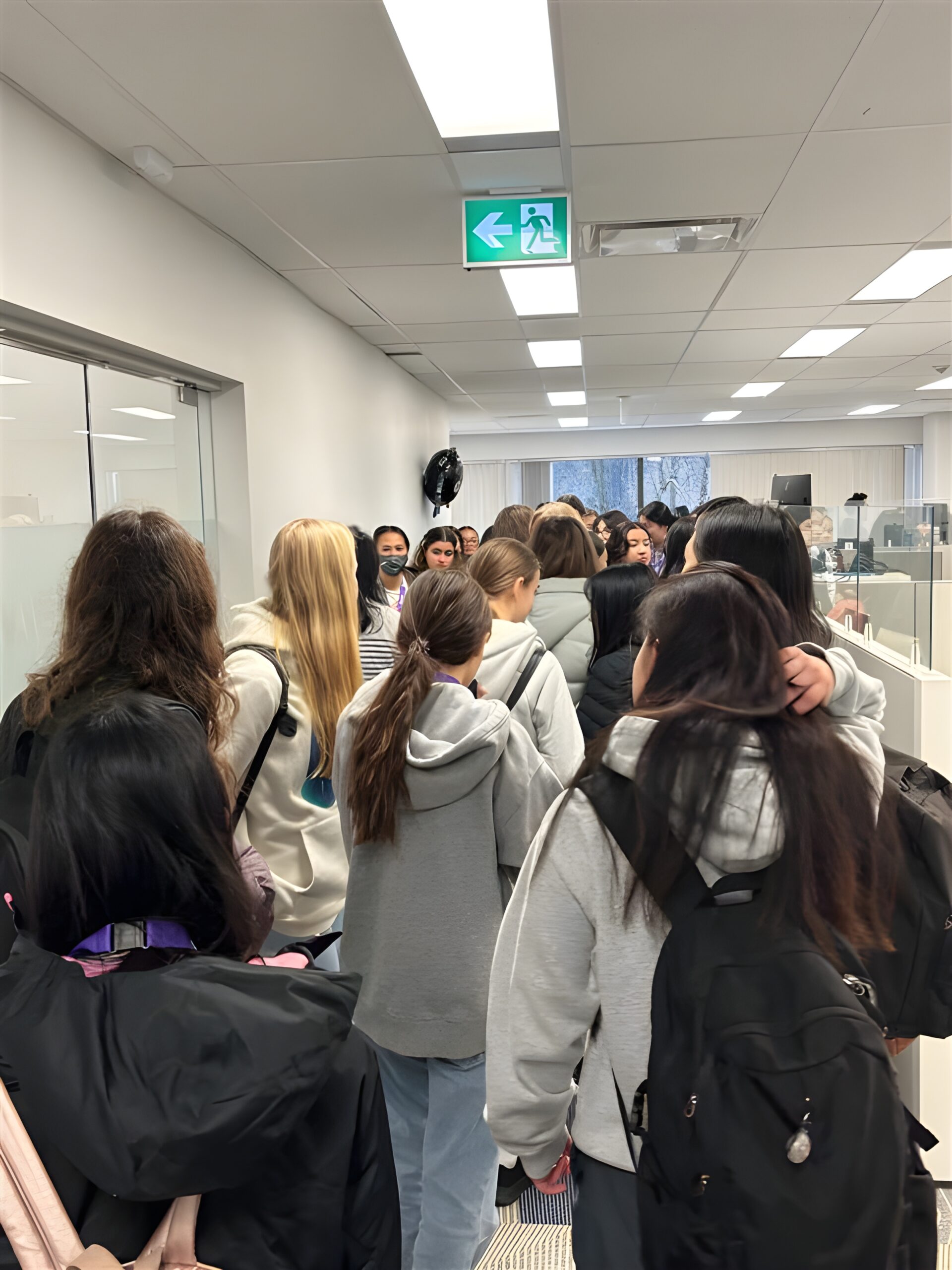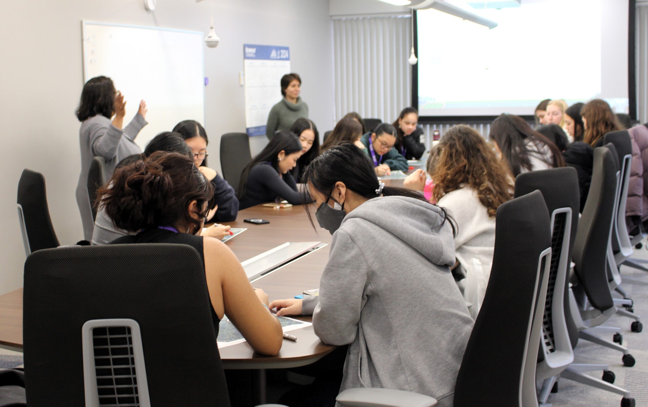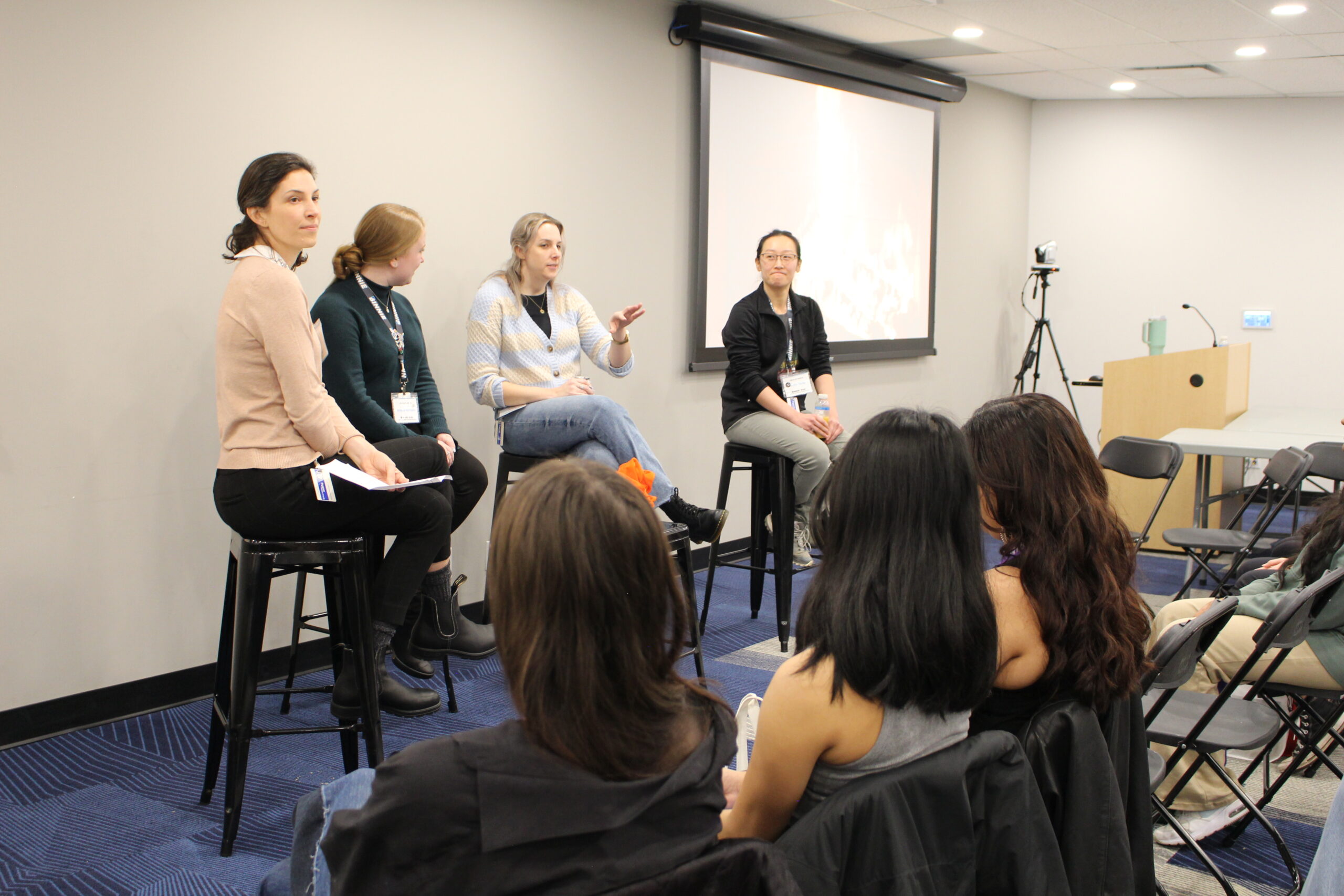 The event welcomed 34 girls from grades 6-12 representing several schools, including Alpha Secondary, Burnaby Central, Burnaby North, Notre Dame, Inquiry Hub, and Burnaby Mountain Secondary. The day started with pastries and beverages at a networking breakfast with volunteers, allowing the girls to connect with our volunteer speakers before starting their day.