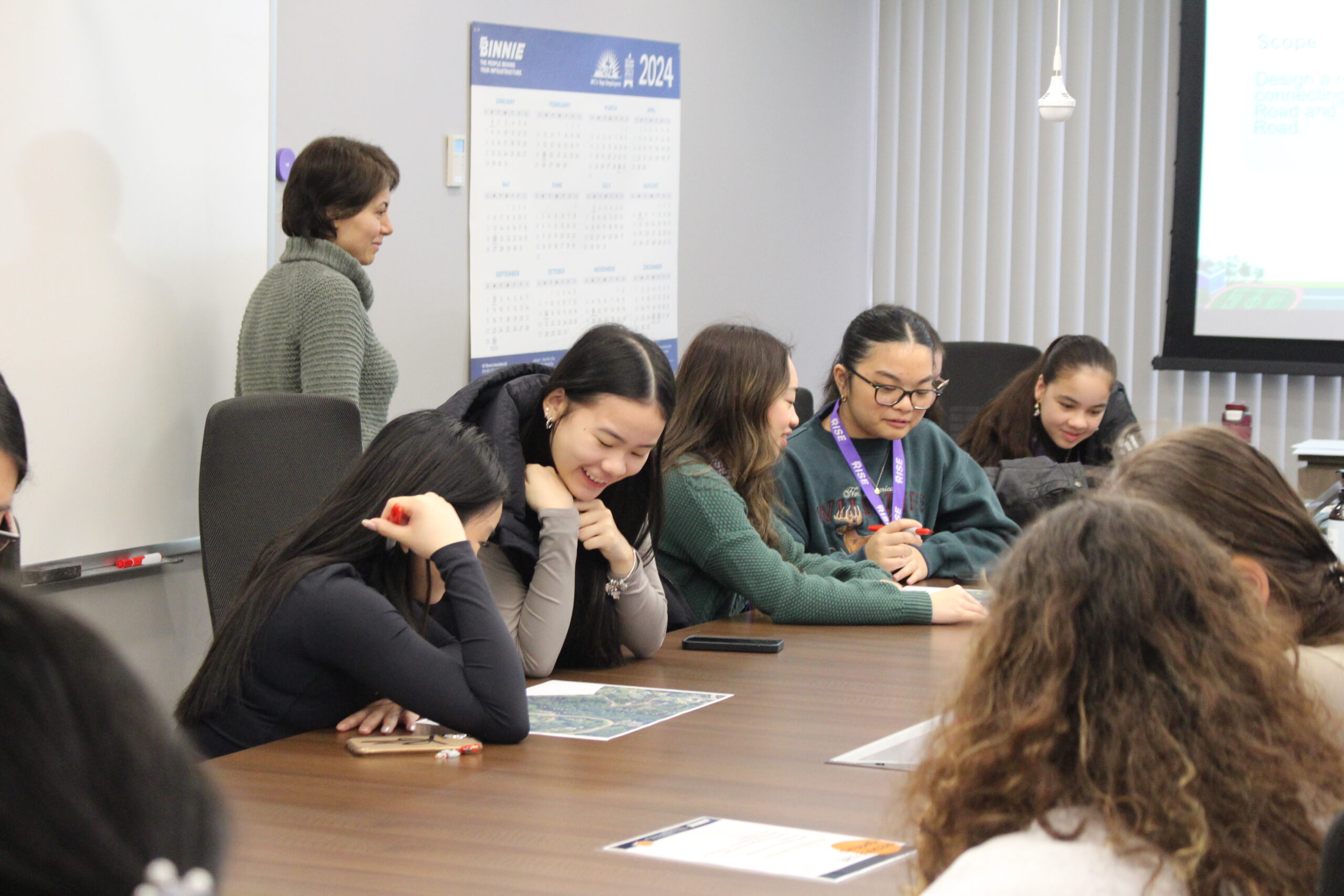 The girls then had the opportunity to learn about Binnie from the Human Resources team, gaining insight into what the company does across British Columbia and Alberta. The day continued with interactive challenges where girls engaged in thought-provoking activities with staff in different roles, encouraging them to think critically and creatively, from project delivery to traffic services.