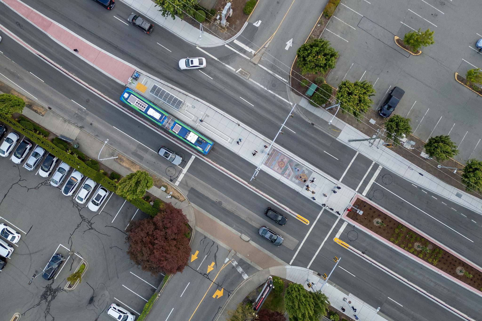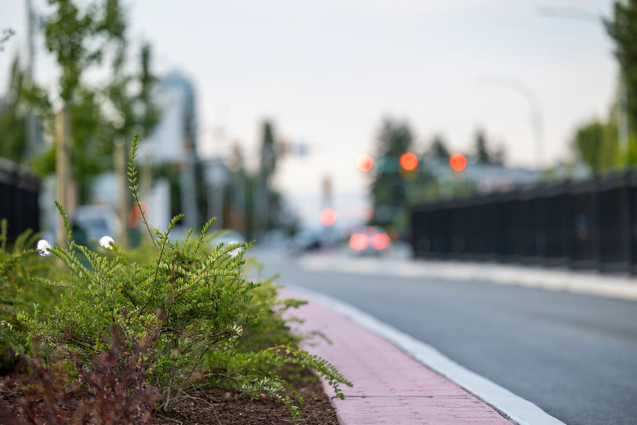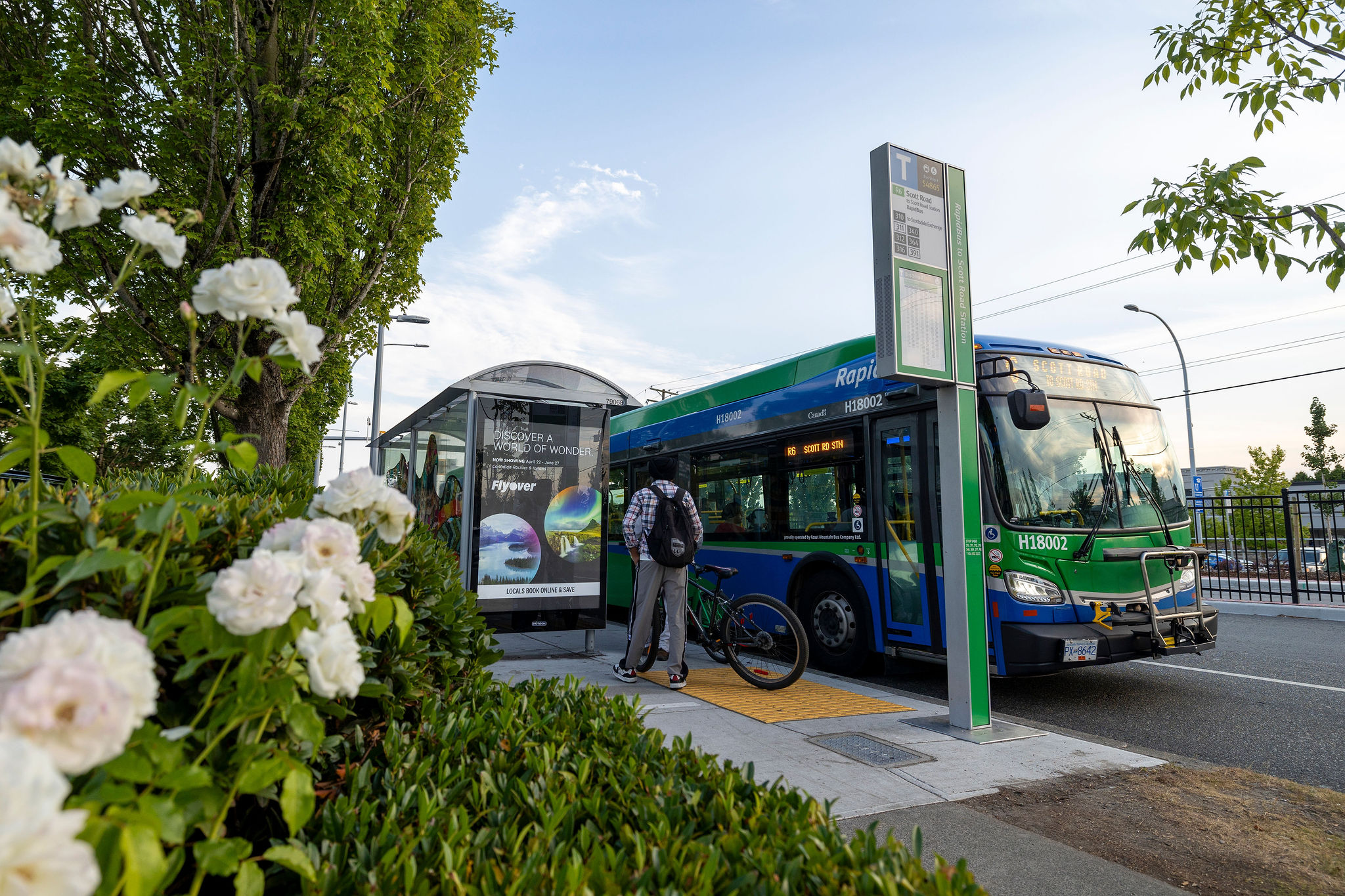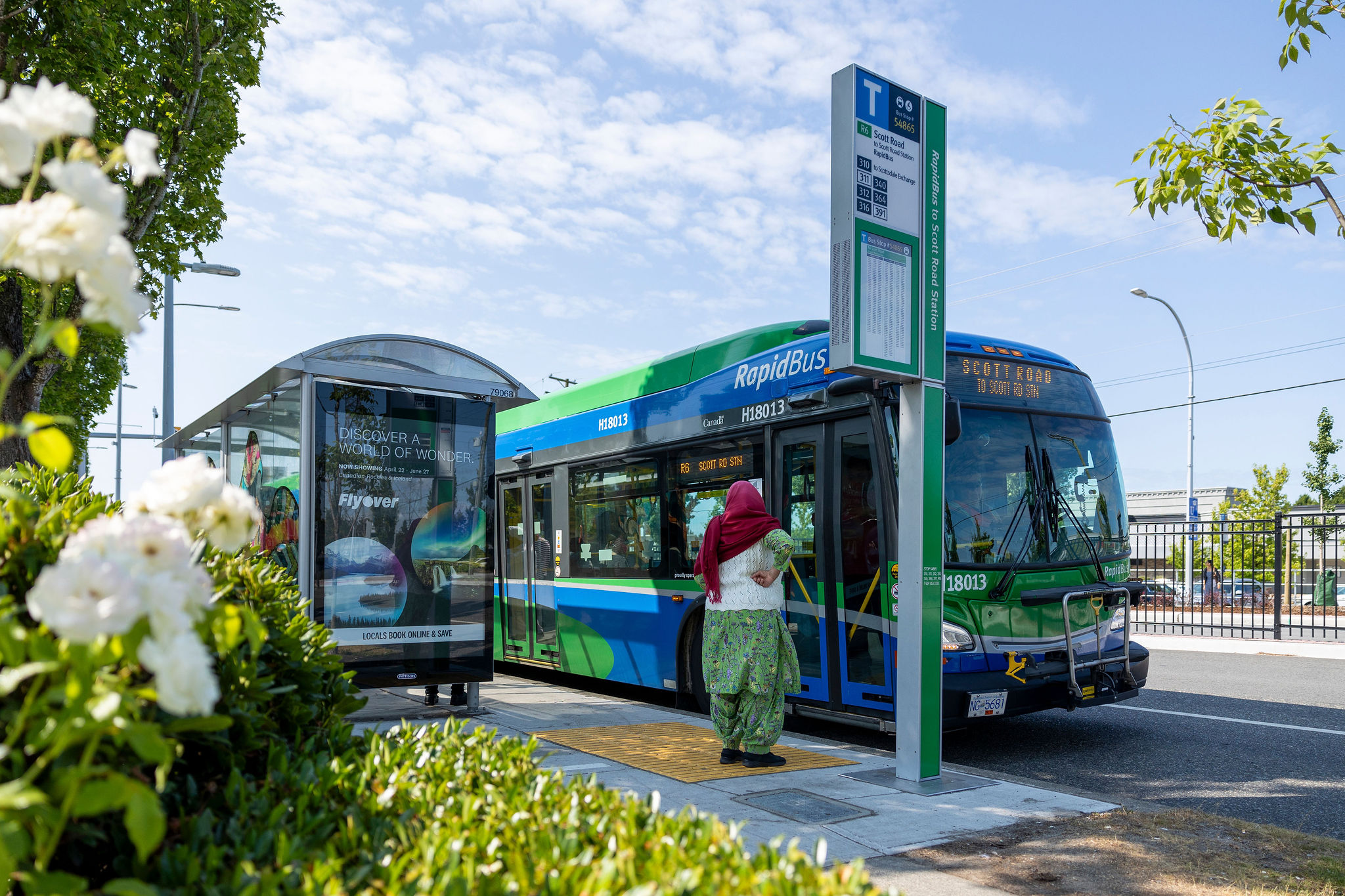 - Innovative transit priority solutions, such as the flagship median island bus stop at Scott Road and 72 Avenue Seamless transitions from curbside to center-running bus lanes for smooth vehicle and bus flow